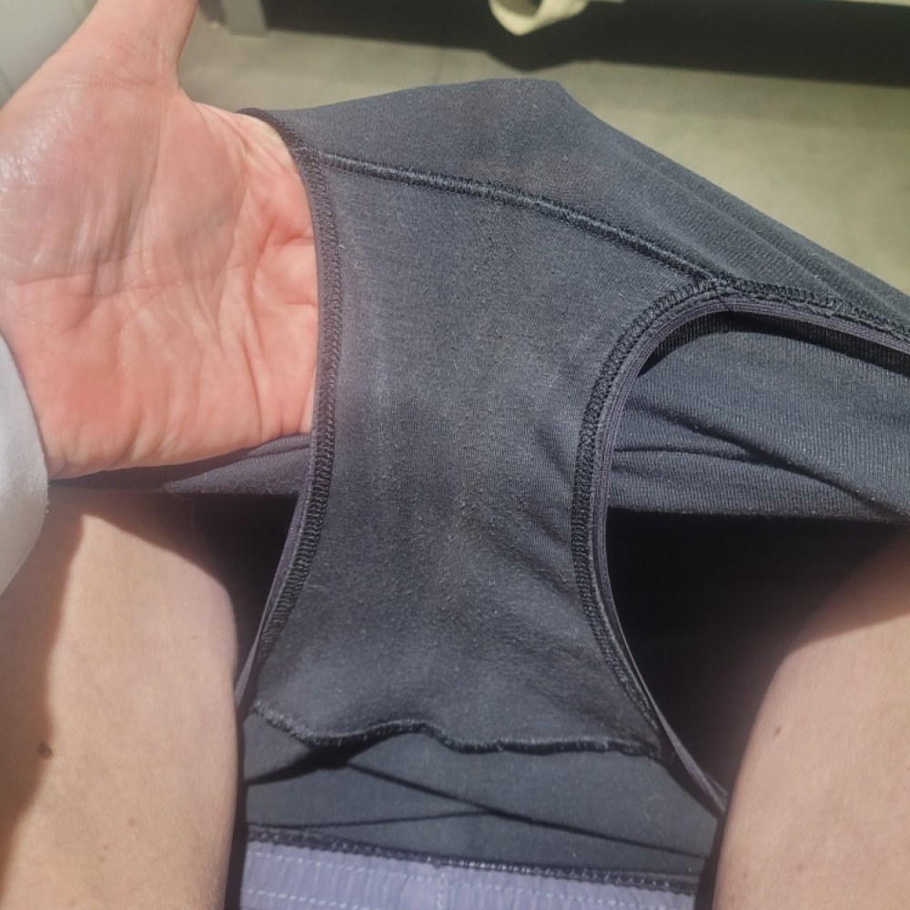 Braguita algodón negra muy muy usada con marcas de…